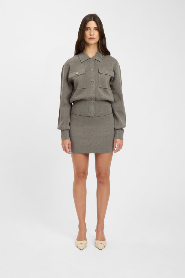 Achieve elevated winter styling with the Amelia Knit Skirt. Crafted from soft knit fabrication and washed in a green moss colourway, this mini skirt flatters the figure as it has a straight silhouette and finishes at the upper mid-thigh.