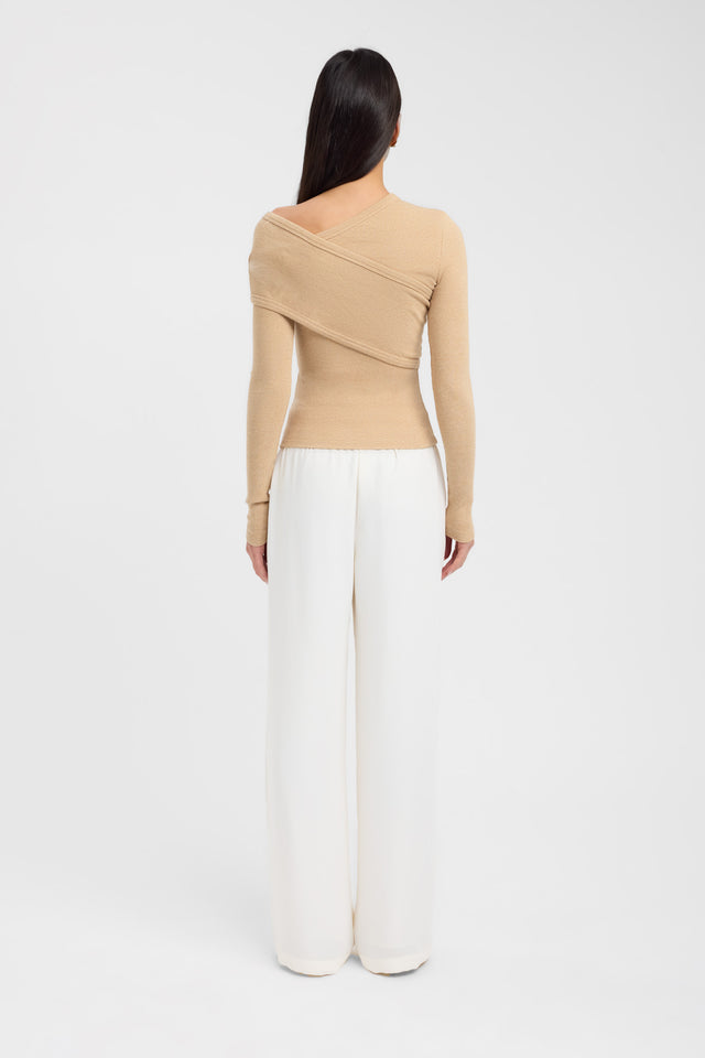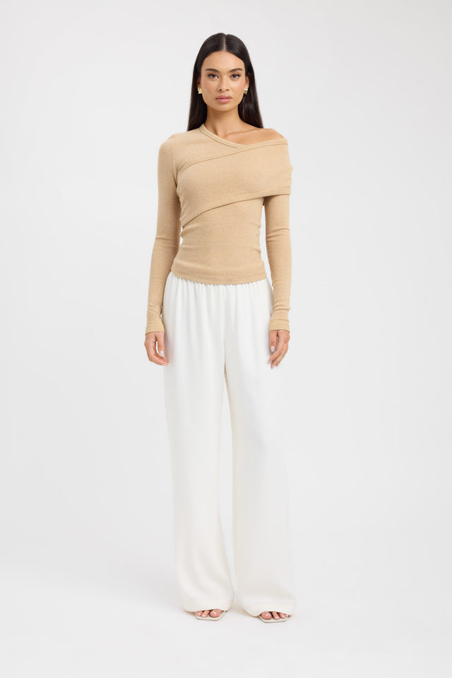 Elevate your wardrobe with the Alaska Long Sleeve Top, crafted from a soft ribbed cotton modal blend for exceptional comfort and subtle stretch. Featuring a refined crossover detail at the front and a gently off-shoulder silhouette, this piece offers a sophisticated yet effortless look.