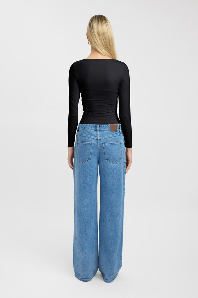 Eden Long Sleeve Top, crafted from polyamide fabrication for optimal stretch and a sleek, form-fitting feel. Designed with long sleeves and a square neckline, it finishes at the waist for a flattering silhouette. Rendered in a Black colourway, this versatile piece is perfect for elevated everyday styling.