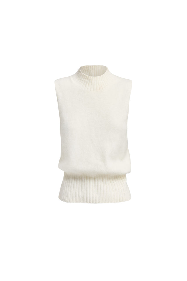 The Geneva Tank, crafted from a soft wool blend, features a high neckline and sleeveless design. The fitted hemline allows for a subtle relaxed fit around the waist, offering a comfortable and laid-back silhouette. Finished in a winter white colourway, this tank adds a touch of effortless elegance to your wardrobe.