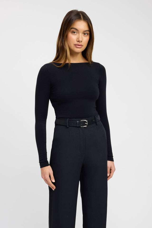 front Jordie Boat Long Sleeve Top Kookai Fitted Boatneck Long sleeve Womens-Blouse