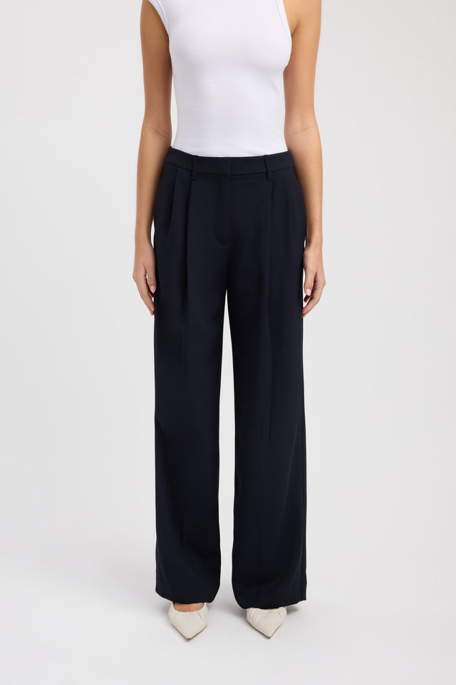 The Opal Adjustable Pant in Ink Blue is a refined and versatile piece. Featuring a striking wide leg and crafted with darts and pleats for a flattering fit, these pants offer unparalleled comfort and style. The innovative buttons on the rear of the belt allow for self styling, enabling you to achieve your desired silhouette.