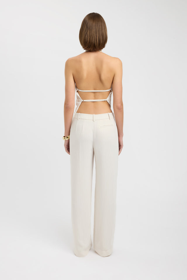 The Oslo Open Back Top in Almond Milk is a refined piece with a high cowl neck and delicate back straps. Subtle pinstripe detailing adds a touch of visual interest. Pair it with the Oslo Low Rise Shorts or Pants for a coordinated and effortlessly chic look.