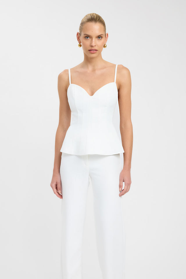The Oyster Seam Top is a delicate and feminine piece. Crafted with a sweetheart neckline and adjustable spaghetti straps, it offers a customizable and flattering fit. The subtle peplum detail adds a touch of romance, while the clean white colorway ensures versatility.