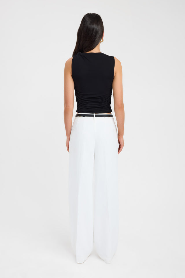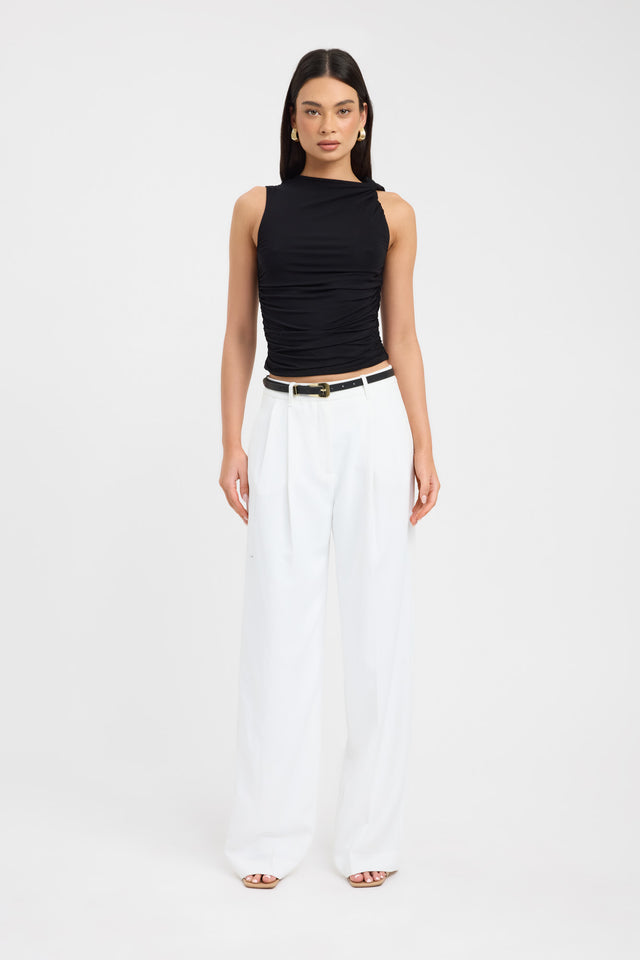 The Ziah Top in a black colourway is a classic wardrobe essential crafted from lightweight, breathable rayon jersey fabrication with a delicate drape. Designed in a tank style, it features a twisted rouched detail on the shoulder, adding a stylish and textured touch to this versatile piece. Perfect for layering or wearing alone, it offers effortless comfort and timeless style.